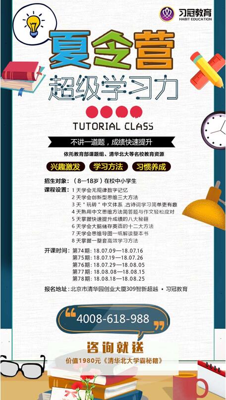 并且给到大家10个名额,只要打电话咨询4008 618 988,就可以免费得到一套价值1980元的《清华北大学霸秘籍》。只要掌握住这些具体的方法和技巧,你也可以拥有超强记忆力,让你的学习更高效!