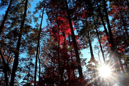 金秋送爽,丹桂飘香,由北京金隅蟒山国家森林公园、金隅凤山温泉度假村共同举办的“第五届蟒山红叶节”于2013年10月16日正式启动。北京金隅国家蟒山森林公园,有树木、花卉176种,森林面积六七百公顷,森林覆盖率达86%以上,所以又称十三陵林场。高峰659 米,有人工林13万亩,树木花卉176种,景区内层峦叠嶂,郁郁葱葱,森林覆盖率达96%,是一座名副其实的“天然氧吧”。深秋树叶经霜之后,十三陵水库北岸,红叶似锦,让您迷恋、沉醉于满山的红叶。风景区内群山连绵,天高地阔,风光宜人,尤其是当秋风乍起之时,密林中的枫树、橡树、黄栌、元宝枫、火炬树等渐次经霜,树叶被染成为绮丽的鲜红色和金黄色。