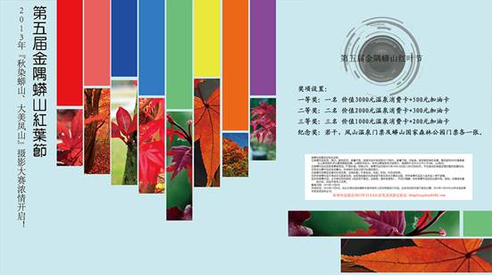 据悉:同期举办2013年度“秋染蟒山、大美凤山”摄影大赛也拉开序幕,即日起至2013年11月6日,金隅凤山温泉度假村将邀请专业摄影家以及广大摄影爱好者前往蟒山国家森林公园,拍摄最美的红叶景观。同时,北京市民前往金隅蟒山国家森林公园,用手机相机拍摄照片,再将拍摄的作品@金隅温泉度假村 、发送到bbmgfengshan@163.com邮箱即可参加#凤山随手拍#活动。并且所有作品都将纳入的“秋染蟒山,大美凤山”摄影大赛作为业余组参赛的作品,优胜者可获得丰厚奖品。