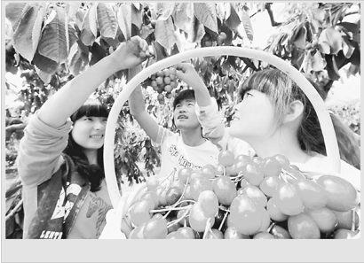 5月13日,游客在北京海淀区凤凰岭樱桃生态园观光采摘。海淀区今年樱桃预计产量达100万公斤以上。受多种因素影响,今年樱桃行情并不看好。海淀区通过举办樱桃节等方式吸引市民去采摘,千方百计确保果农增产增收。
