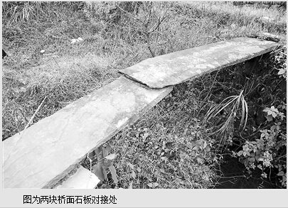 我们观测发现,该桥支撑力中心点是桥南端的那堆石头,过桥人员及两块桥面石板的重力完全靠那堆石头支撑起来。尤其是承担整座桥重力的那块桥面石板约3米长,仅有约1米压在石堆下,有约2米悬在空中。这桥久经风雨,历尽沧桑,迎来送往,始终坚固如初。