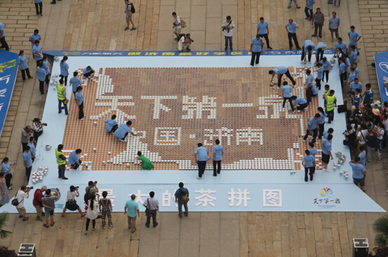 面积约86.5平方米,由5280碗大碗茶组成的“最大茶拼图”