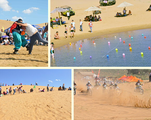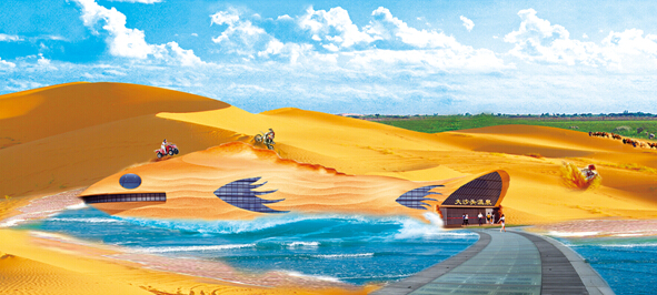 旅游区以沙漠温泉为主体,以民俗风情文化为依托,以沙漠生态农牧业观光为载体打造的集沙海娱乐、休闲度假、商务会议、文化体验、农业采摘、生态旅游于一体的西部沙漠运动大本营。