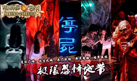 时值万圣时节,杭州乐园惊悚大变身,等你勇闯鬼门关。恐怖战场鬼屋里为何半夜歌声,阴气弥漫,为何千年亡魂会向人发起进攻?幽灵鬼船这艘在海面上行驶百年的鬼船将在万圣节期间突然显现,骷髅、海盗亡灵无处不在,他们鱼贯而出,你有胆量尝试吗?