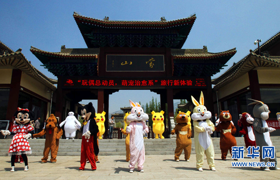 山东沂蒙山龟蒙景区卡通偶像迎游客