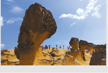 野柳地质公园位于台湾新北市万里区,是大屯山余脉伸出于东海中的岬角,长约1700米。此处岩石因风化、海蚀作用显得鬼斧神工。据台有关部门统计,从4月底到5月初,赴台大陆游客每日都超过5000人。图为5月3日,众多游客在野柳地质公园游玩。