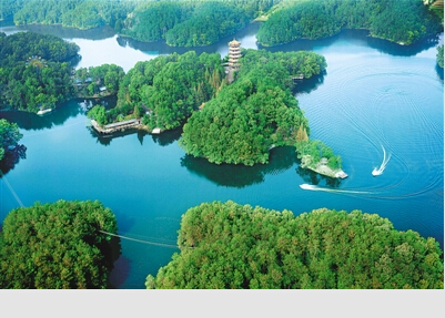 图为该县南湖公园。