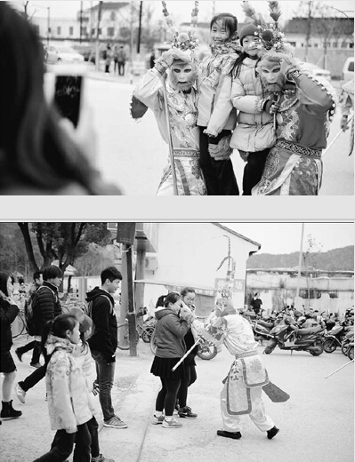 前一段时间,我们到江苏省苏州市天平山景区游览,景区游客很多。然而,在景区门前,一群装扮成“猴王”的聋哑人,见到游人便拦住,摆出各种姿势要求与游客合影(见图),随后便做出每次10元钱的手势,游人必须付钱后方可离开。被强拦的游客十分气愤。呼吁景区管理部门管管这些强行合影要钱的“猴王”。