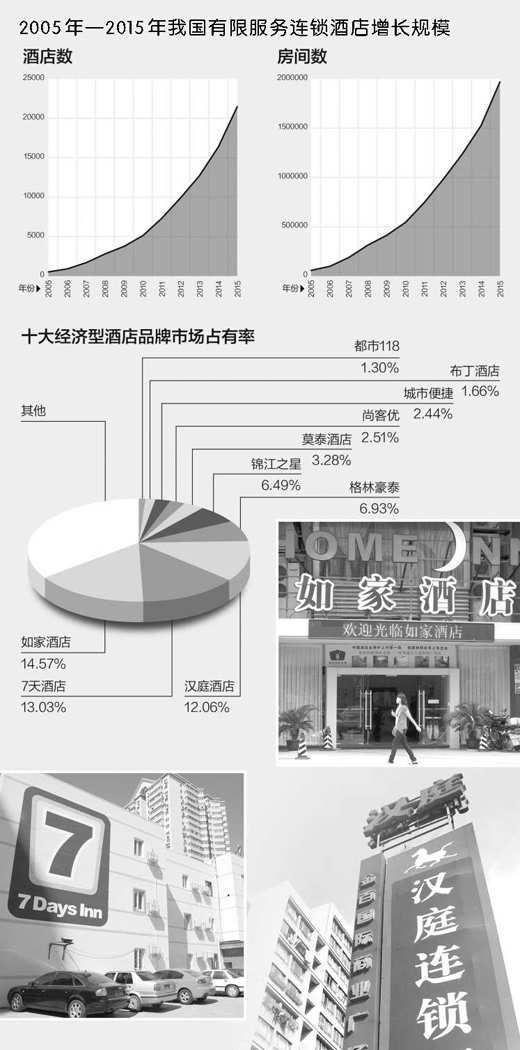 据中国饭店协会统计,2005年至2016年1月,我国有限服务酒店总数(主要是快捷酒店)从522家快速增加至21481家,10多年间增加了40倍。
