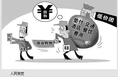 旅行社开办门槛低,市场竞争激烈,组团社低价招揽客人,地接社倒贴“买团”,导游“赌团”诱导游客购物,形成一个畸形的“食物链”。