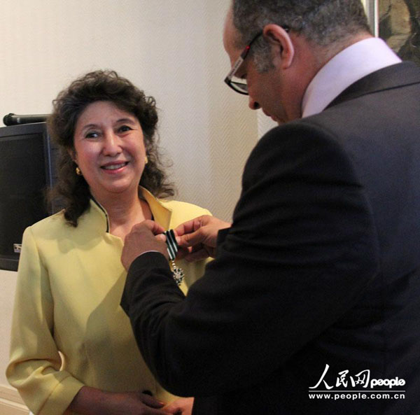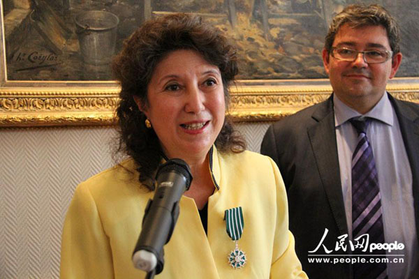人民网巴黎6月18日电(记者邢雪)6月18日,法国巴黎中国电影节创办主席高醇芳在巴黎十三区市政府获颁法兰西艺术与文学骑士勋章,法国总统府文化与通讯顾问大卫·凯斯勒在颁奖时,肯定了高醇芳通过中法电影交流,为促进两国文化理解做出的贡献。法国巴黎十三区区长顾梅、华裔副区长陈文雄,中国驻法使馆工作人员以及各界中法友好人士出席了授勋仪式。