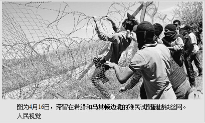 自今年2月以来,通往中欧和西欧的“巴尔干通道”上的多国对来自叙利亚等国的难民关闭边境,导致大批难民滞留。目前,超过一万名难民滞留在希腊和马其顿边境地区,希望通过马其顿前往欧洲大陆。