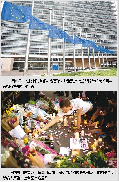 欧盟降半旗哀悼英国爆炸遇难者