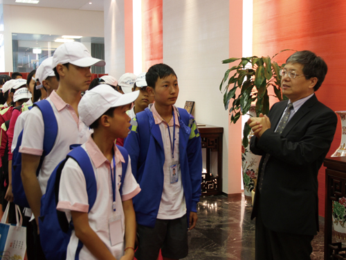 为了表达对总领馆的感谢,来自宝兴中学的10名同学演唱了一曲充满浓郁地方特色的歌曲《传奇宝兴》。随后,温总领事陪同师生们参观了总领馆,简要介绍了领馆人员日常工作及生活情况。在参观的过程中,孩子们显得兴奋又新奇。“我从没有想象过,祖国驻外总领馆是什么样子的。今天我知道了,原来总领馆是这样的,有大小不同的接待会客室,有屏风、花瓶、字画等古香古色的装饰品,真是太漂亮了。”“总领馆的叔叔阿姨们也特别亲切、随和,和我们聊天说话,很关心我们。”孩子们七嘴八舌的讨论着他们的欣喜发现。
