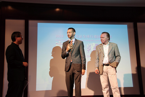 上海书法家协会主席、书法家代表团团长周志高做了热情洋溢的答谢讲话。他说海派书法走出国门,走进汉堡就是为了促进中德两国的文化交流。他特别强调上海与汉堡是多年的姐妹友好城市,这次上海书法家代表团带着上海市民的友好情意,将为勤劳智慧的德国人民、汉堡市民展示充满中国传统魅力的书法艺术,让当地的艺术家,书法爱好者通过海派书法艺术来了解中国,进一步认识改革开放的上海新貌,从而增进两个姐妹城市的友谊与发展。