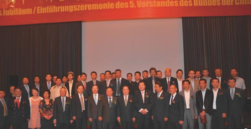 全德华侨华人新一届理事会人员在会议结束后合影。