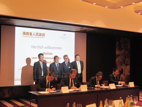 中国驻慕尼黑总领馆朱万金总领事在致辞中欢迎海南省来到德国进行招商引资。他说,中德经济发展合作日益密切,中国已经是德国第三大贸易伙伴,同时德国是中国在欧盟中最大的贸易伙伴,海南省不仅旅游资源丰富,同时在高新技术产业等方面具有明显的投资优势。海南省李国梁副省长简单介绍了海南省的发展状况、投资环境和投资政策等。据了解,海南是全国最大的经济特区,也是唯一的省级经济特区。海南省拥有丰富的石油天然气资源、旅游资源、陆地和海洋生物资源、矿产资源,加上其优越的地理位置,海南省在中国-东盟自由贸易区、泛珠三角区域经济合作和国际经贸交流中孕育着巨大商机。李国梁副省长希望越来越多的德国企业到海南投资兴业。海南省投资推介会在慕尼黑成功举办