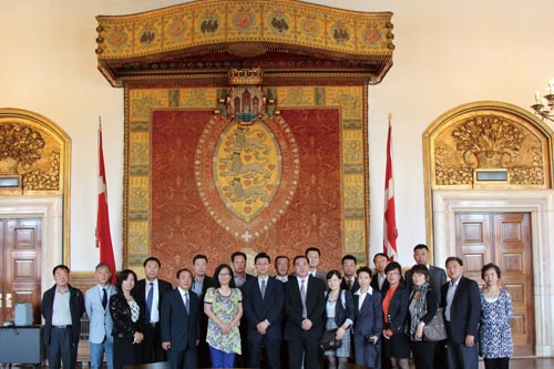 本刊讯8月29日,丹麦哥本哈根最大的绿色批发市场首次迎来了由“中国农业部农业贸易促进中心”组织的《中国优貭农产品丹麦推介与展示交流》代表团一行。这次,中国农业部农业贸易促进中心、中国綠色食品协会牵头北京市、辽宁省、江苏省、河南省、广西省、山东省、内蒙等相关农业部门及企业,专程来丹麦推介中国优质绿色农产品,并介绍2013年中国国际农产品交易会,同时与丹麦农委、北欧中国商业联合会,丹麦上海商会等洽谈商贸合作与交流事宜。北欧首位华人议员,蝉联三届丹麦哥本哈根王海迪市议员特意安排在市政大厅亲切接見全体代表团一行。她说:欢迎祖国亲人来丹麦进行商贸活动,她有信心竭尽全力服务大家,最后,王议员高兴地陪同大家一起参观哥本哈根市政厅。