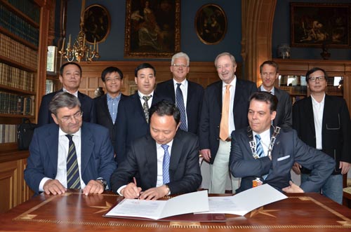 在一片空旷的土地上,明克先生和中企投资集团董事局主席陆长清先生,向大家次介绍了“欧洲中国园区”项目。作为此项目的投资方陆长清先生说到:“‘中国城(China Town)’这个概念对于中国人和外国人来讲都不陌生,对于大多数人来说在国外的‘中国城’仅仅意味着几家中餐馆、几条不太整洁的小街道和几个中国的小店铺。而我希望能通过我们的‘欧洲中国园区’项目给予‘中国城’一个全新的概念和形式。我们的‘欧洲中国园区’将是针对整个欧洲市场,提供各种各样中国制造货源,以批发为主要经营模式,为中国企业提供欧洲销售平台和途径,形成占地几十万平米的大规模的中国货物集散中心。我们的‘欧洲中国园区’将建设商贸区和居住区,成为欧洲、中国两大市场的桥梁,一方面满足欧洲市场对于物美价廉的货品需求,一方面满足中国企业走出国门的发展需求。我们将通过并购﹑开发﹑建造三结合的方式在欧洲的中心法兰克福周边打造一个全新的中国城——‘欧洲中国园区’。” 常州钟楼经济开发区周书记对这个项目充满期待和信心,他表示在政府、企业家共同努力下,中国企业走向世界的脚步一定会越来越稳健、越来越成熟。随后的会议中,周书记和考察团一行、中企投资集团董事局主席陆长清先生、以及巴菲堡市相关负责人一起商谈了此项目的开展合作事宜。德国的欧洲经济中心重要地位,吸引着中国的企业、各地政府开展项目合作、而中国飞速发展的经济影响力,也着实让德国朋友钦佩和赞叹,能够让中国企业在德安家,意味着中德两国经济更进一步密切合作、携手共进。