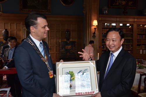 结束紧张行程之后,巴菲堡市市长托马斯史德(Thomas Stoehr)先生、哈希亚集团现任总裁亨克尔先生及家人、该市政府领导明克先生等德国贵宾在皇家王冠山城堡酒店设宴款待各位来自中国的企业家。市长托马斯史德先生在致辞中说:“非常高兴大家来到巴菲堡,来到我的家乡,我感到非常荣幸,我以巴菲堡市长的名义欢迎各位。去年我有幸前往中国,虽然时间极其短暂,但中国给我留下了极其深刻的印象。巴菲堡有值得我们引以为豪的、全德国最有名的矿泉水企业,同时令我更加高兴和期待的是,和远道而来的朋友们有项目上的合作,如果项目成功,那么我们和中国之间的联系纽带将更进一步,为此我非常高兴。”周书记非常感谢巴菲堡市对他们此行考察的热情接待。他说:“中国、德国两个国家都在努力加快经济的发展。今天是我们两市项目合作的良好开端,衷心希望,在两地政府和两地企业家的共同努力下,我们的合作项目能够顺利开展。我们地方政府,将会全力支持“中国园区项目”的发展,也真诚邀请德国朋友到中国,到常州考察投资。”晚宴期间,中德嘉宾、考察团成员、企业家们就中德企业发展、投资德国、“中国园区项目”等话题交流畅谈。
