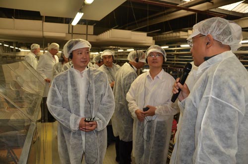 巴菲堡市有“泉水之城”的美誉,早在1864年一家生产矿泉水的家族企业就在这里成立了。经过百年的发展,如今它已发展成全德国家喻户晓、生产规模最大、历史最悠久、拥有上千种产品的饮品生产家族企业——哈希亚(Hassia)集团,此次访问的重头戏就是参观该集团。哈希亚集团现任总裁亨克尔(Hinkel)先生以及工作人员热情的接待了考察团一行,带领考察团参观了生产车间、观看了企业介绍短片。亨克尔先生向大家介绍到,哈希亚公司在巴菲堡开发了30处天然泉眼,从管理、采集到运输,实行全面监控。公司专门实验室负责检验这些从60米到300米深度不同的采集点采集而来的水样。检测合格的水样,将会被送往另一个中立实验室再次进行化验检测,确保水源的高质量。考虑水质变化的复杂性,公司实验室全天24小时无间断的对水源进行监测,对产品进行监测。实验室的工作人员也实行轮班制,随时都保证有15位工作人员在岗。考察团一行还参观了集团的矿泉水博物馆,这里陈列的照片、器具展示了哈希亚百年的发展历程,记录了矿泉水生产营销行业的技术演进:从近乎刀耕火种般原始低效的纯手工打井、罐装和驮马运输,到依靠蒸汽动力的简单机械支持的瓶装流水线的雏形,再到代表业界最新技术和生产管理水平的全自动电脑控制瓶装和贴签物流一条龙工序,从厚实笨重的、用毡草垫分隔包装的陶土瓶、玻璃瓶,到用标准分装箱包装、易于携带的塑料瓶,再到充分考虑环保和节能理念,可完全回收利用或降解的有机高分子瓶。大家仿佛触摸到人类从工业大生产革命到现今数字时代奋然跃进的有力脉搏。考察团各位成员纷纷表示:“企业持续健康蓬勃的发展力值得我们学习和深究。”