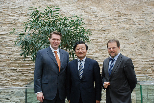 我驻慕尼黑总领事朱万金(中)应邀访问上普法尔茨基尔海姆地区工商会并与总干事赫尔墨斯博士会谈。