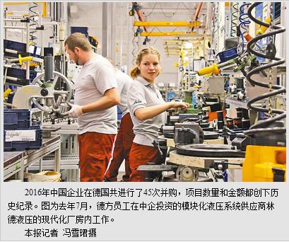 据德国普华永道会计事务所统计,2016年中国企业在德国共进行了45次并购,总金额超过110亿欧元,项目数和金额都创下历史纪录。中国驻德国使馆经商处官员对本报记者表示,中德加强投资合作互利双赢,双方企业、政府都有进一步加强合作的内在需要。