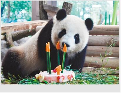 当地时间7月10日,德国柏林动物园为来自中国的大熊猫“梦梦”庆祝四岁生日。