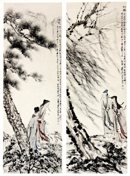 刘波是范曾最得意的门生之一,范曾在去年题贺其展览时曾写道:“刘波能绝宾客、守寂寞,目标在以诗为魂、以书为骨,孤踪独往。其有大成,期在必然。门中诸生其为佼佼者,亦在料中。”1995年,刘波考入了由范曾当年捐助创立的南开大学东方艺术系,从本科到研究生,再到博士,与导师范曾结下了师生之缘。“我从本科时期就和范先生接触很多,之后又读了他的硕士和博士,接触机会就更多了。我喜欢诗词,而导师尤其重视个人在诗词方面的修养,在这方面我比其他同学下的功夫更大些。”刘波说,“这次到巴黎,基本每天晚上导师都会和我一起做对联,有时一直做到深夜。他对我的影响非常大,由学术到思想,到情感,不仅是在诗词、书法、绘画上,他更教会我很多做人的道理。”
