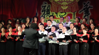由旅法华侨华人组成“塞纳之声”合唱团首先登台,为现场观众们献上了精心排练的《祖国不会忘记》、《葡萄园夜曲》和《共和国之恋》三首合唱歌曲,为庆祝演出拉开帷幕。