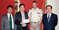 军营最高指挥官向朱增岳赠送纪念品