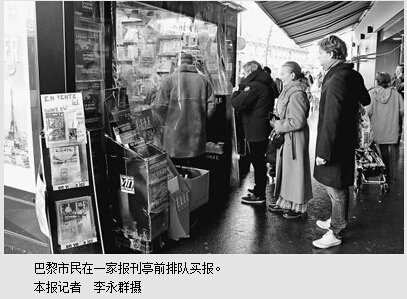 巴黎《沙尔利周刊》袭击案发生后,法国人更爱读报纸了。1月8日,袭击案发生第二天,纸媒发行量大幅飙升。全国性日报在报刊亭与报摊的销售量从平时的日均60万份攀升至100多万份。