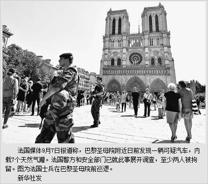 9月8日,法国警方在巴黎近郊抓获由极端组织“伊斯兰国”遥控指挥的一个女子恐怖团伙全部3名成员,该团伙4日以来曾策划在巴黎圣母院以及巴黎市内的里昂车站发动恐袭,但均被警方及时挫败。10日,一名少年在巴黎12区的家中被捕,他正准备当天在公共场所用枪扫射平民。调查人员透露,恐怖分子计划的恐袭方式包括炸弹背心、用汽车冲撞公共建筑物等,而且这两起未遂恐袭案都与在叙利亚或伊拉克的恐怖组织有关。