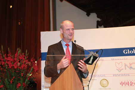 图片005图为荷兰贸促会主席Jochum S.Haakma在开幕酒会上致欢迎辞。(张亮摄影)