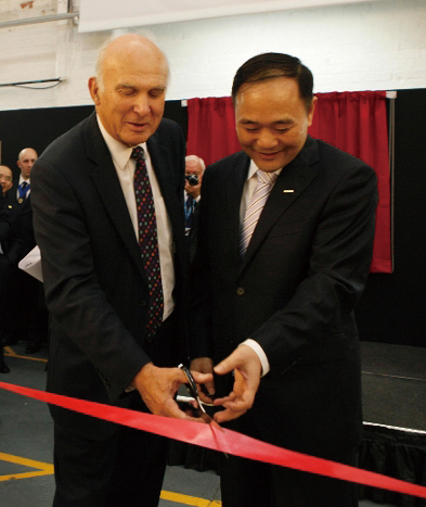 吉利董事长李书福和英国商务大臣凯布尔在剪彩仪式上