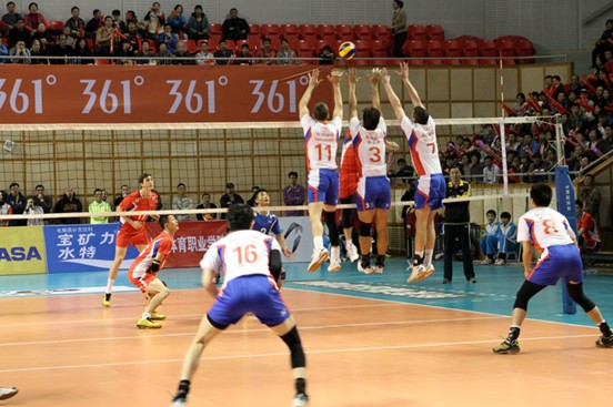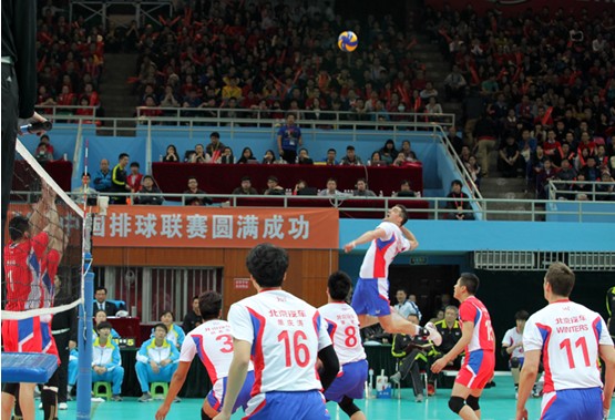 北汽男排严密拦网