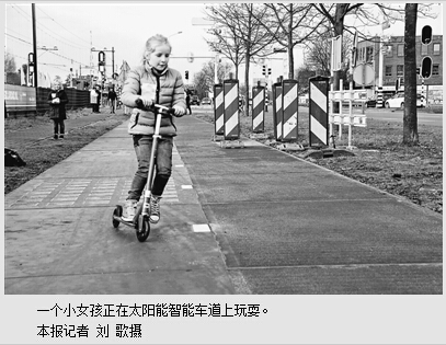迪维特说,项目的关键技术是镶嵌在路面上的玻璃板,它必须透光、便于接收照射,这样太阳能发电板才能工作,而且玻璃板必须坚固耐用,保证行车安全。“目前,荷兰确实领先一步,在太阳能公路项目上拥有三项核心科技,包括LED发光、太阳能板设置、玻璃材质路面的研发。更重要的是,在其他研发机构还在讨论项目的可行性时,我们已经建成了一条‘成品路’,并进入了测试应用阶段。”迪维特说。