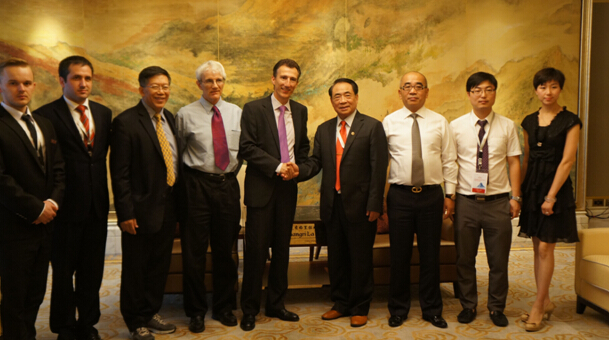 2014年8月17日下午,中国民族卫生协会常务副会长兼秘书长郁德水先生、中国民族卫生协会抗衰老专业委员会主任邵鲁平先生接见了由瑞士顶峰医疗集团董事、瑞士洛伊克巴德温泉抗衰老医院Andri Martin先生领衔的外籍专家团队。