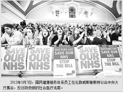 2012年3月,《医疗与社会保健法案》在议会通过。新法规定,任何达到价格要求的医疗服务提供商都能参与NHS竞争,即允许私营医疗机构参与到医疗服务市场竞争中。去年7月,英国《卫报》报道称,斯塔福德郡的NHS癌症护理服务将公开竞标,12亿英镑的竞标价成为英国医疗史上数额最大的外包服务。英国卫生部最新的数据显示,2013年NHS的预算中有10%流入了私营机构,数额高达100亿英镑。