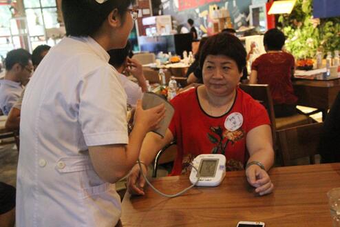 这一次的活动,董医生也将他的团队带过来了,董医生和他的助理还耐心地为每一位来宾量血压。