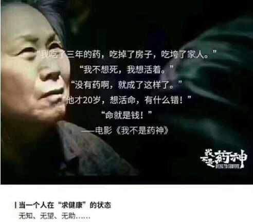 上映19天,票房29.64亿,影片《我不是药神》揭开了国人最关注的问题,让“中国梦健康梦”再次被提及。在影片中,几句极富感染力的台词,更让人久久不能忘怀。“我吃了三年的药,吃掉了房子,吃垮的家人。”、“我不想死,我想活着。”、“没有药啊,就成了这样了。”、“他才20岁,想活命,有什么错!”、“命就是钱!”