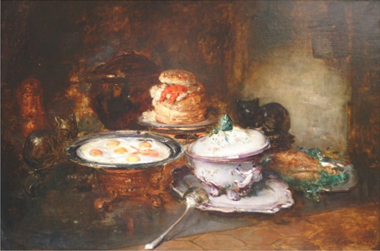 (Alfred ROUBY )瑞卡都·咖鲁坡(Ricardo GALUPPO)都是这些古典大师中比较有代表意义的印象派大师。其中查尔斯·孟吉诺(Charges Monginot)的《Still life 》曾经受到过印象派先驱爱德华•马奈的大力赞赏,被称为最具代表性的印象主义风格静物作品;阿尔弗瑞德·如彼