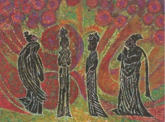 这时期,在各种实践经验的积累下,她创作出了连环画作品《彭德怀》/《贺龙》;彩墨作品《黑天鹅》、《柬埔寨姑娘》等反常规传统笔墨探索作品,并临摹了大量的敦煌壁画素材和古代装饰绘画。在这些作品中我们既能看到中国传统绘画的特点,又能看到西方元素的融入,正是这样的风格,使得罗小华的作品能够在国外多次展览中大受好评。据了解,巴黎美爵艺术基金(MATZO PARIS ART FUND)此次展览的罗小华古典作品则以这些作品为主,还包括《大京剧》、《两女神》等后期创作作品。