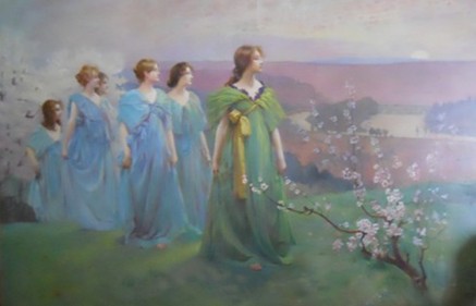 作为曾在1900年荣获过法国荣誉军团骑士徽章的法国流派画家让·保尔·西尼巴尔蒂(Jean-Paul SINIBALDI),他的《春天》(现今收藏于巴黎美爵艺术基金(MATZO PARIS ART FUND))充满着春的气息,表达了西尼巴尔蒂内心对美的憧憬,远处即将跳跃而出的朝阳和蜿蜒的群山,让整幅画面充满了宽广无垠的气魄。近处盛开的桃花,肥沃的土地,青绿的草地赞颂着迷人的春天。女神们的裙装赋予了欧洲油画具有的神话色彩,再现了欧洲文化传承至今仍然秉承的对美好世界的向往。西尼巴尔蒂的绘画不但细腻唯美,而且独具欧洲文化特征,人物的传神表现,更增添了画面的动感和当代人们对逝去时代的研究价值。让·保尔·西尼巴尔蒂的作品《Rajahs的女儿》和《克劳狄帝国王朝》现收藏于赛特的保罗•瓦列里博物馆,再次证明了这位画家不凡的创作能力。