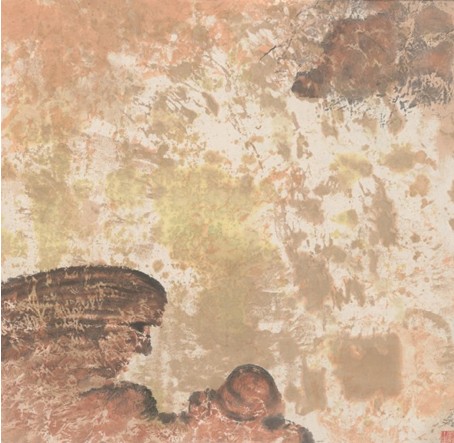 罗小华的这幅《黄河之母》正是表达了最核心的黄河文化精神——黄河哺育中华儿女。画面的整体并不强调实在的形态,而是使用了类似映像派的风格特点——运用色彩来诉说主题。《黄河之母》旨在表达和描绘黄河雄壮,以及作为华夏民族源头的文化内涵和历史沧桑感。写意的手法在此运用得恰到好处,不拘细节的笔法正是我们对黄河复杂感情的最好诠释。整幅画卷像似黄河两岸相互眺望,滚滚的黄河水奔腾而过,释放着强有力的生命力。但是从另一种角度观察这幅画,画面又好似一面干枯斑驳的墙壁,历经了岁月的侵蚀,满是疮痍和破败,写满了世事的沧桑。细看本幅画的左下角,黄河母亲的形象与自然之石融为一体,神情也被刻画的充满母亲般的慈爱,仿佛在凝视着她哺育出的新生儿,画面也由此变得生动充满内涵。