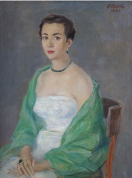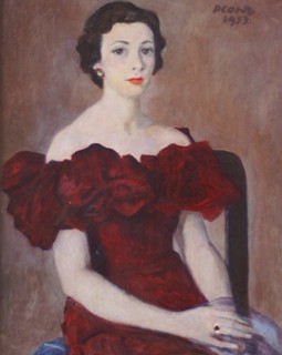 普瑞莫·孔蒂的肖像画闻名世界,他的肖像画作品色彩鲜艳、笔法自然,人物布局独具匠心,例如他的《室内女士肖像》,一幅绘制的是红色装束的高贵女性,一幅绘制的是绿色披肩白色装束的优雅女性,孔蒂对她们的描绘无论是穿着还是神情,均入木三分。孔蒂对她们头部和胸部的描绘朝向有一个微小的角度。这样处理克服了坐姿的僵硬感,增加了视觉上的丰富性。右手自然的搭在左手上的动作,增添了女性的端庄典雅,增加了画作具备时代的真实性。发色、红唇、耳环的色彩点缀,让人物更显传神。色彩鲜艳且带有立体感的裙装,让画面中的女性更加的妩媚动人。