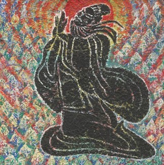 孔子,圣人也,这是后人对他的尊称。在罗小华的《孔子学说》里,孔子圣人的形象一目了然,浓眉长髯的老者、傲视群芳的姿态、学识渊博的申请、罗小华只用了简单的黑色就将孔子的形象勾勒的岸然生动。孔子的儒家思想影响着几千年的华夏文明,也在一定程度上对国人意识形态的改变起着非常重要的作用,因此后人称之为圣人,罗小华将只用在神与佛背景中才出现的光晕运用在了孔子的身上,表达了罗小华心中的孔子的崇高地位,同时黑色的运用表达了罗小华对孔子冥想的超脱境界的感叹,以及对孔子虔诚与信仰的信念。孔子的思想仁礼学说为主,仁说,体现了人道精神,礼说,体现了礼制精神,即现代意义上的秩序和制度。人道主义是人类永恒的主题;秩序和制度社会则是建立人类文明社会的基本要求。孔子的这种人道主义和秩序精神不但是中国古代社会政治思想的精华,也是罗小华毕生的感悟。罗小华将感悟绘制于画中,这是艺术家希望对属于她自己时代的一种奉献和职业精神。