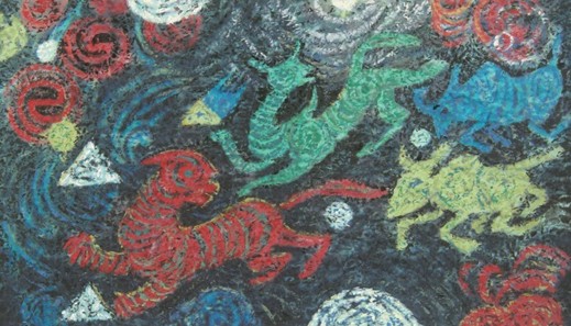 飞舞的神兽取材自古老的东方神话,双角的麒麟、独角的獬豸、奔走的牛群,这些都是古代传说中神兽形象,但罗小华却巧妙的使用了新颖的刻画手法,让这些神兽更具神秘色彩。油画般的描绘来自欧洲艺术的精华,丰富的用色也取自法国印象画派,这般的结合创造来自罗小华独特的艺术生涯经历。这几只神兽奔腾在星河间,艳丽的色彩,跳跃的笔法,这些都是罗小华格式风格融为一体的独特表达,这种组合方式给观者带来不一样的感官享受,堪称视觉盛宴。大胆的尝试正是罗小华灵感的源头,敢于挑战各式各样的绘画风格,让罗小华保持着旺盛的创作精力,也由此创作了许多具有很高艺术价值的佳品。
