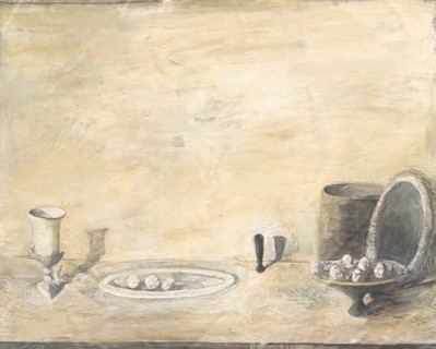 夏尔丹的静物打破了传统静物画的束缚,给未来的静物艺术发展起到了奠基的作用。以致当代艺术家在构图上的创意更是别具一格。当代艺术家已逐渐舍弃了古典绘画对于均衡美的追求,完全随从自己的内心感觉和画面的形式美感来组织构图表达独特的审美。其中雷米·艾融的静物画是当代最具有代表性的画风。在他的的绘画中,空间不同于传统感念,它不是一个用透视关系来表达并可以存放物的空间,它不是既定的、受限制的被动空间,而是一个因物的存在而生成的空间。在《白色瓶子》这幅作品中,雷米·艾融将白色的杯子、盘子、瓶子等随意摆放,运用光影折叠效果突出立体空间感。在画面中,全部物件抽取了物像本质进行简洁描绘的这种二维平面形象的处理带给人一种中国禅和精神的意味。