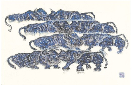 逼真的观赏体验是这幅作品的特点其一,而对牛群的细致刻画也是这幅作品堪称佳作的原因。利用版画为框架,却从用中国水墨式的描绘手法刻画牛群。而在细节方面,细致的笔触将雪中牛群的形态,甚至神态都刻画得栩栩如生。观者在观看时仿佛正与牛群相互注视,一种复杂的感情涌上心头。正是罗小华融合了两种绘画风格,才能达到这样的视觉和精神上的双重体验。《雪原牛群》可谓是罗小华作品中达到画神与画心水准的佳作。